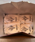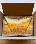 Cassava and taro are packaged and sold by the carton – a cardboard box which contains individual packs inside an insulation liner. Carton size is approximately 440 x 320 x 150mm.
